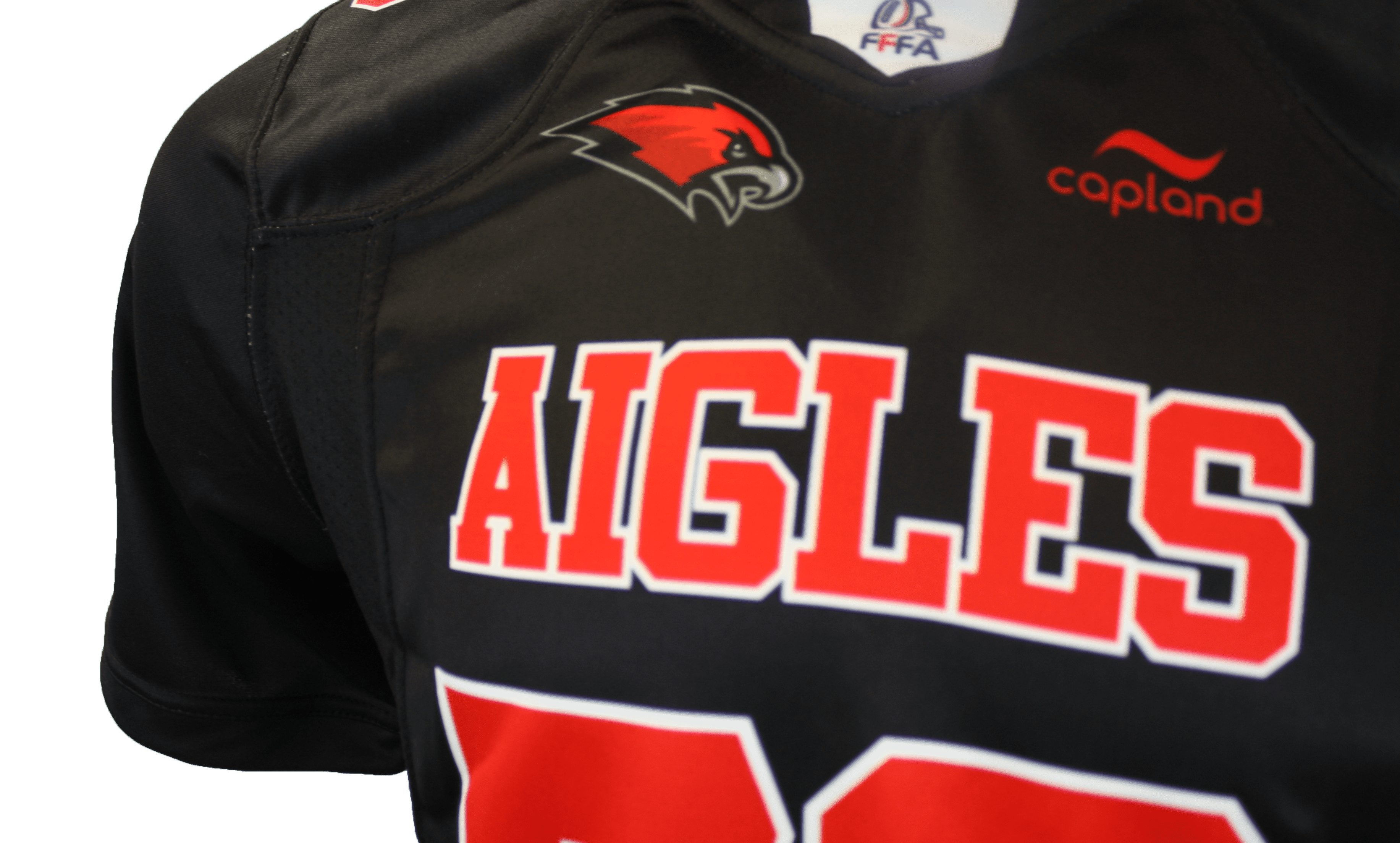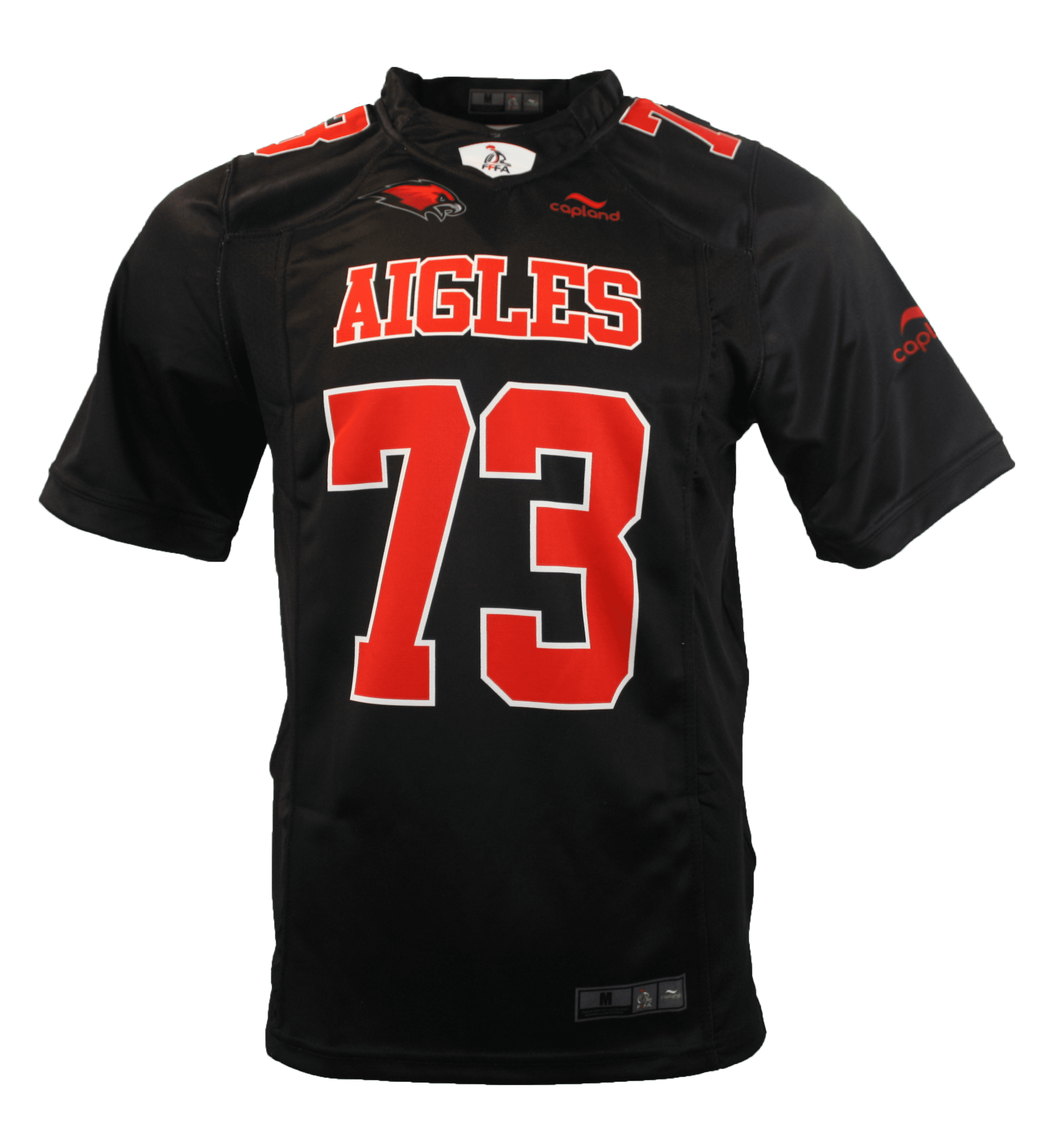 Le fan jersey Capland Aigles de Chambéry officiel FFFA – Homme a une coupe standard, ni trop serrée ni trop lâche. Ce fan jersey est 100% en polyester, possède le logo et le nom du club, le numéro et le logo casque FFFA en sérigraphie.
