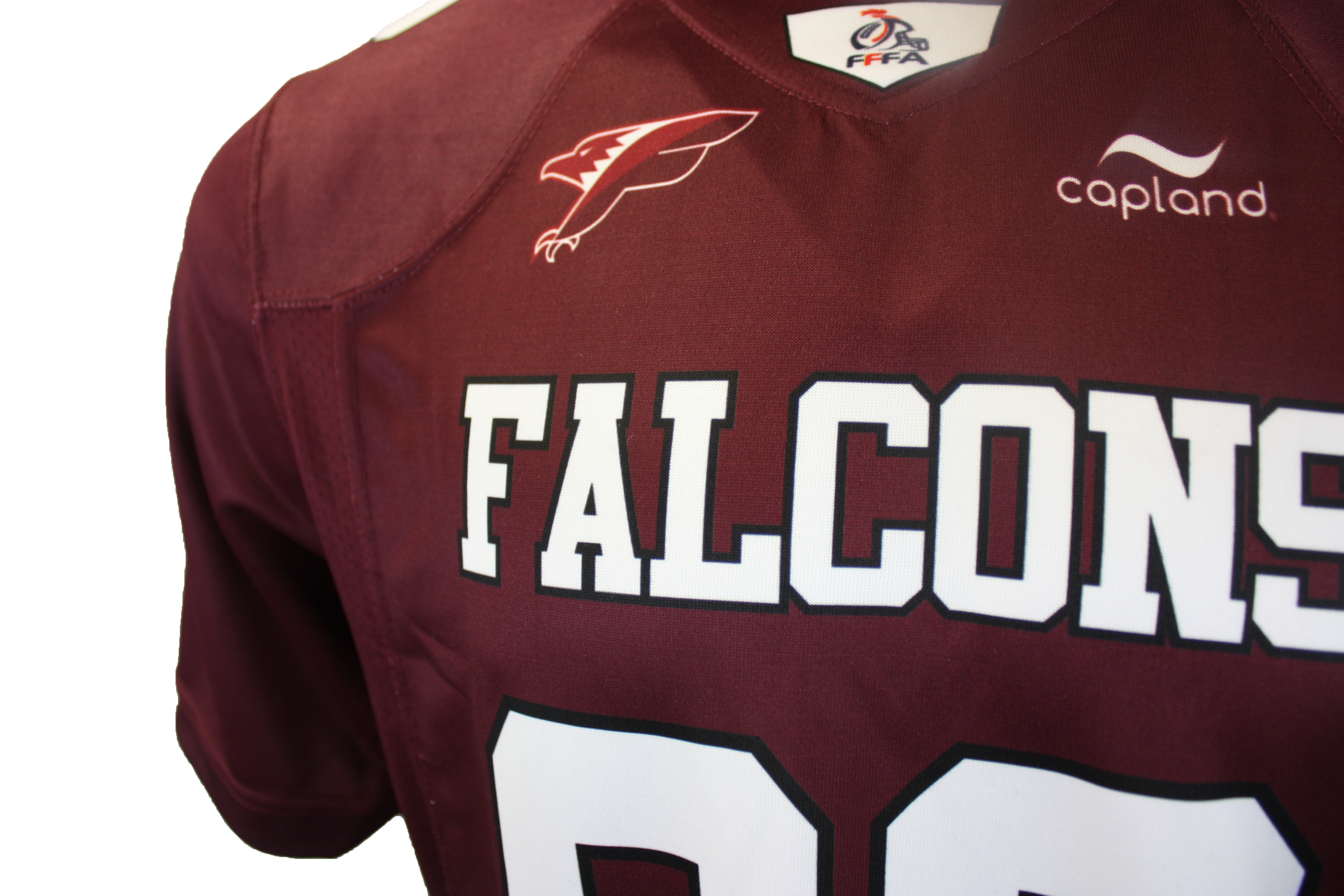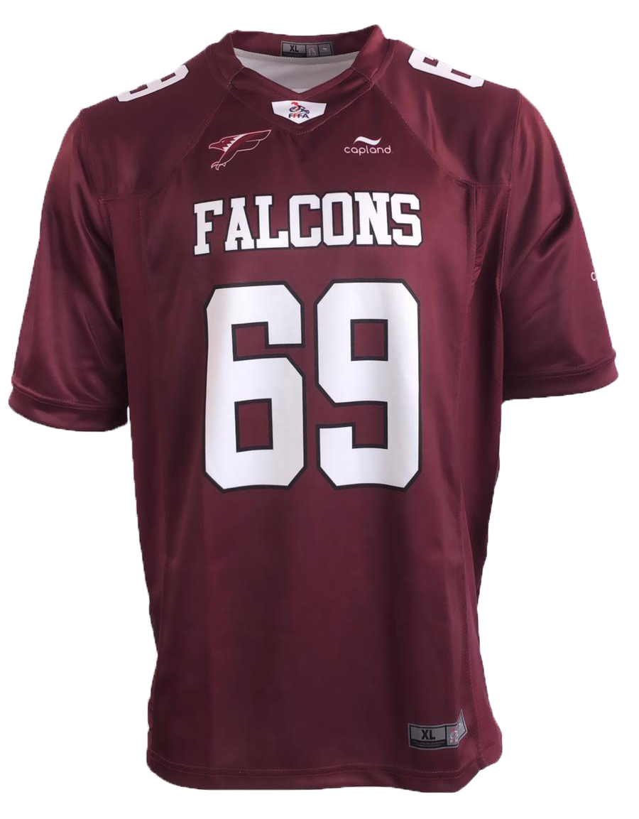 Le fan jersey Capland Falcons de Villeurbanne officiel FFFA – Homme a une coupe standard, ni trop serrée ni trop lâche. Ce fan jersey est 100% en polyester, possède le logo et le nom du club, le numéro et le logo casque FFFA en sérigraphie.